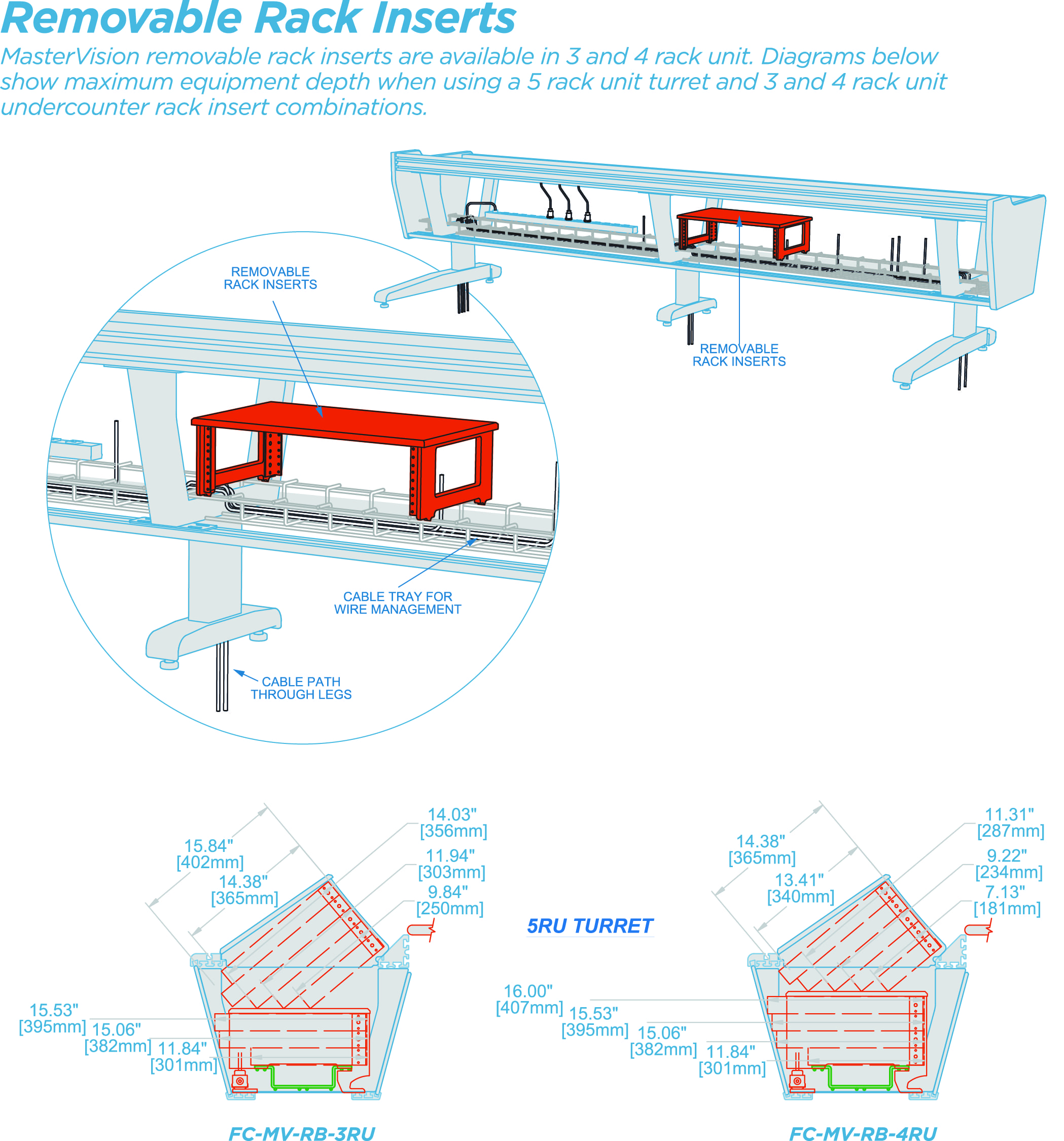 MasterVision’s sleek, low profile design gives users better sightlines and a shorter reach to touch screens and rack equipment.