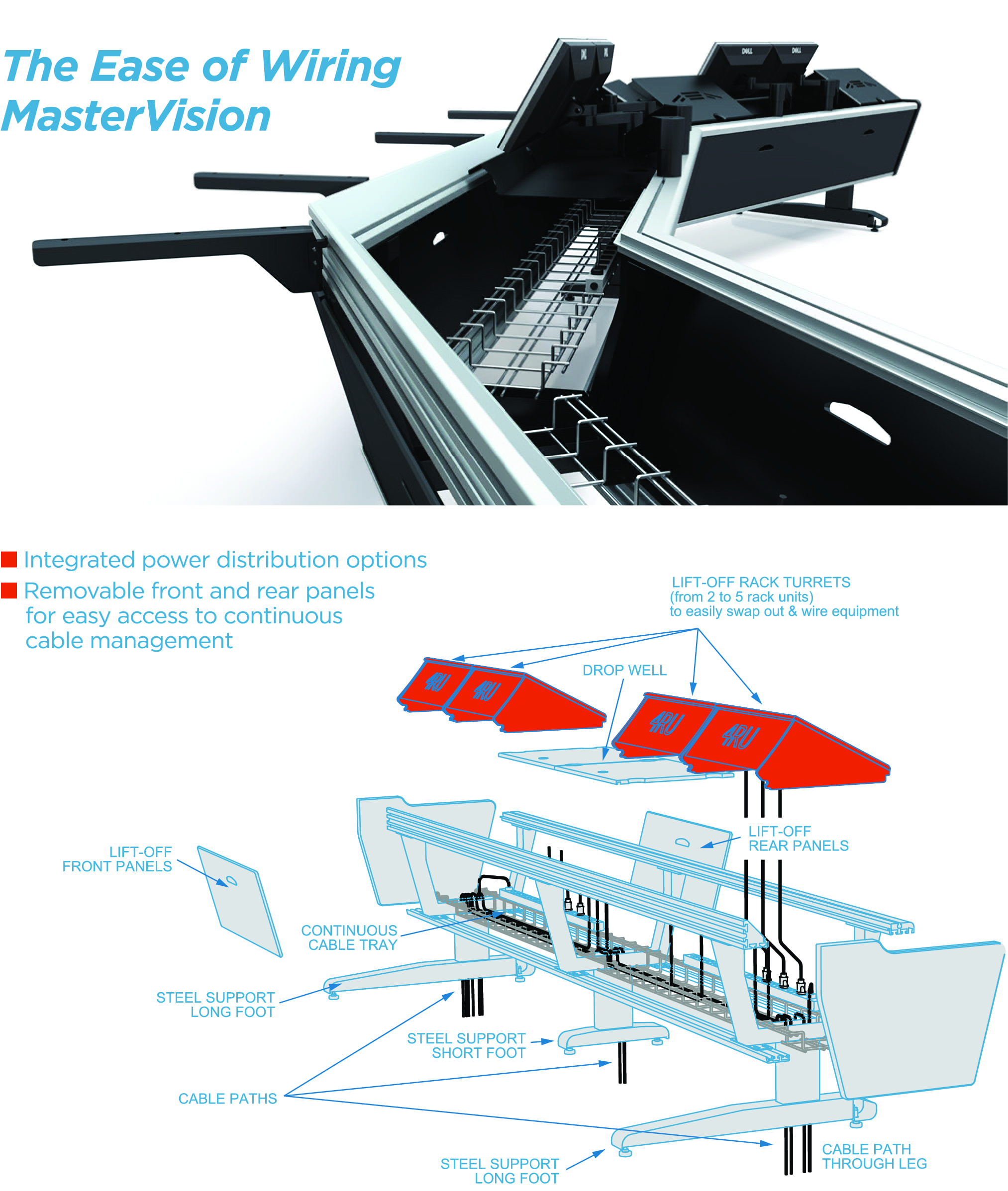 The open frame design and continuous integrated cableway makes pulling cables and wiring easier and more accessible.