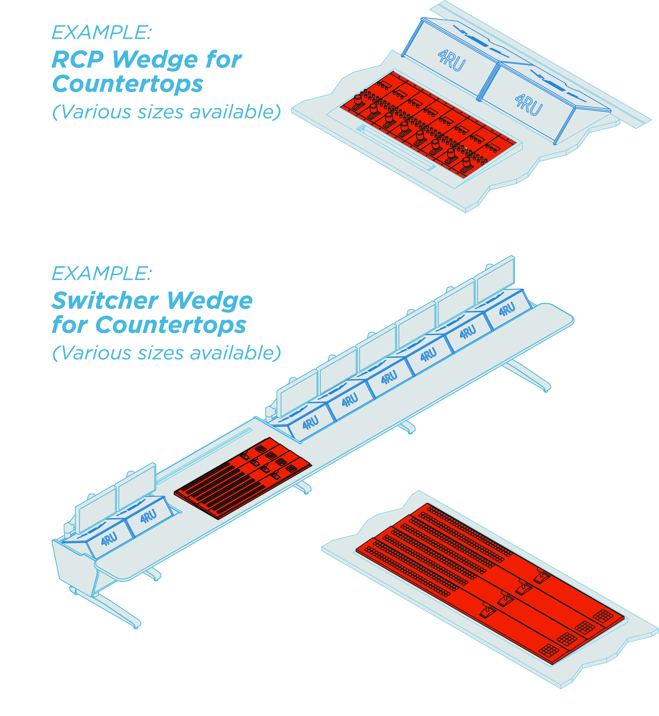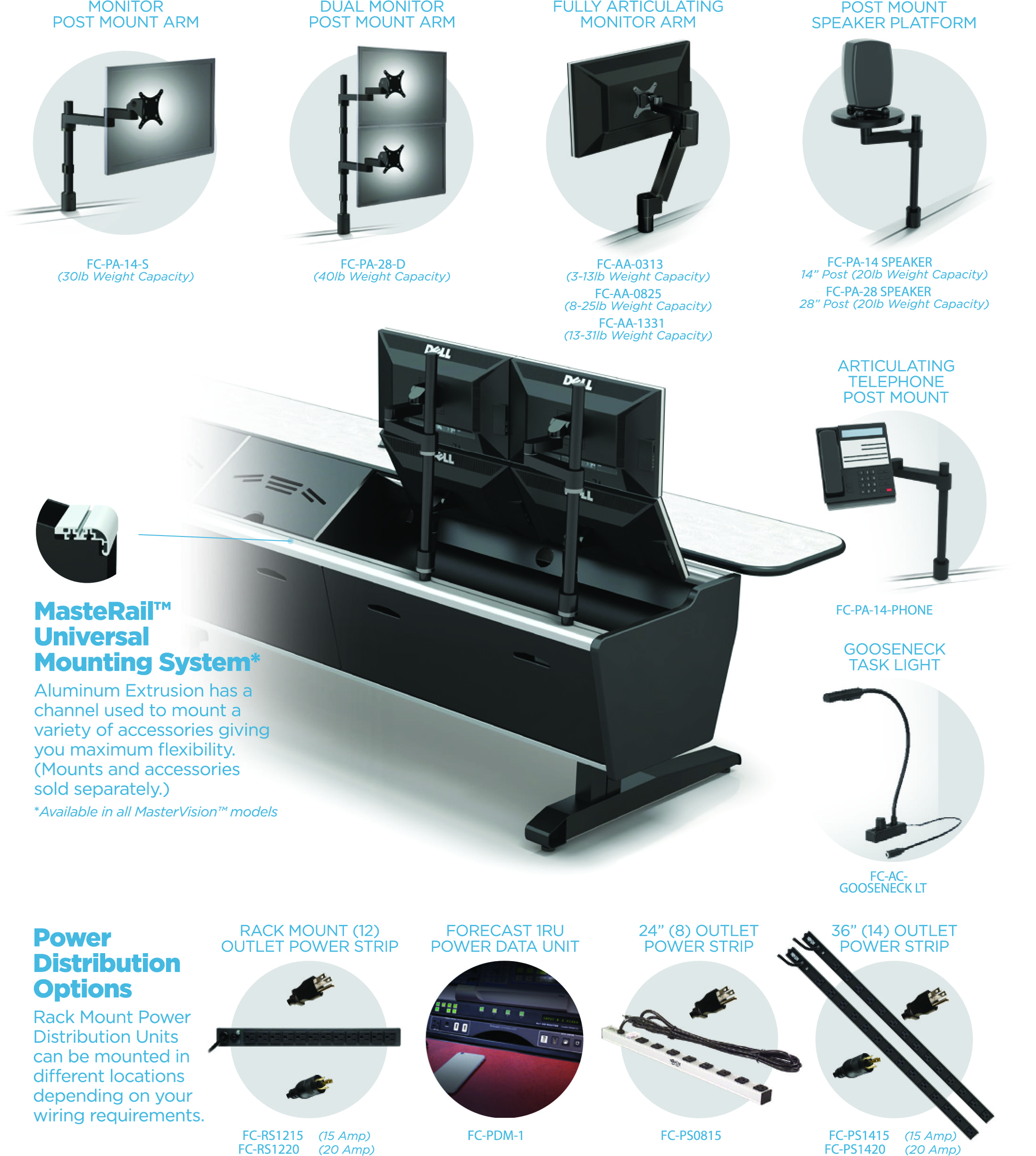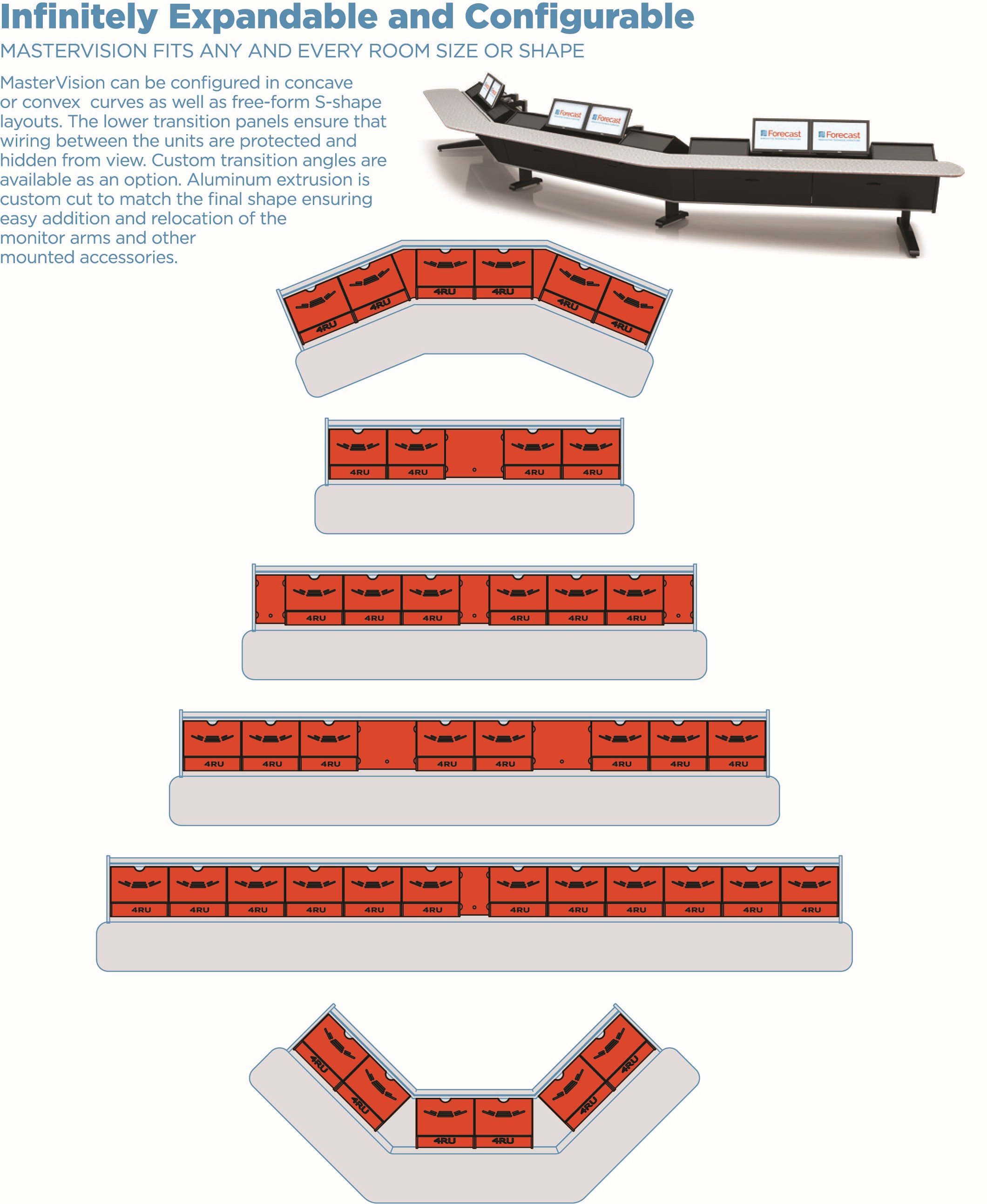 MasterVision™ consoles can be configured to fit almost any space. Angular transitions are also available to create custom footprints.